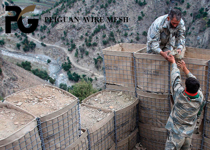 강조하다: | 고온 침지 직류 전기로 자극된 헤스코 범람 방벽,MIL1 헤스코 범람 방벽,보안 보호 방폭벽 바구니 |